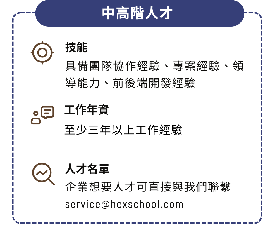 六角主要培訓符合企業所需人才,由多角累積人才流量並輸出媒合。